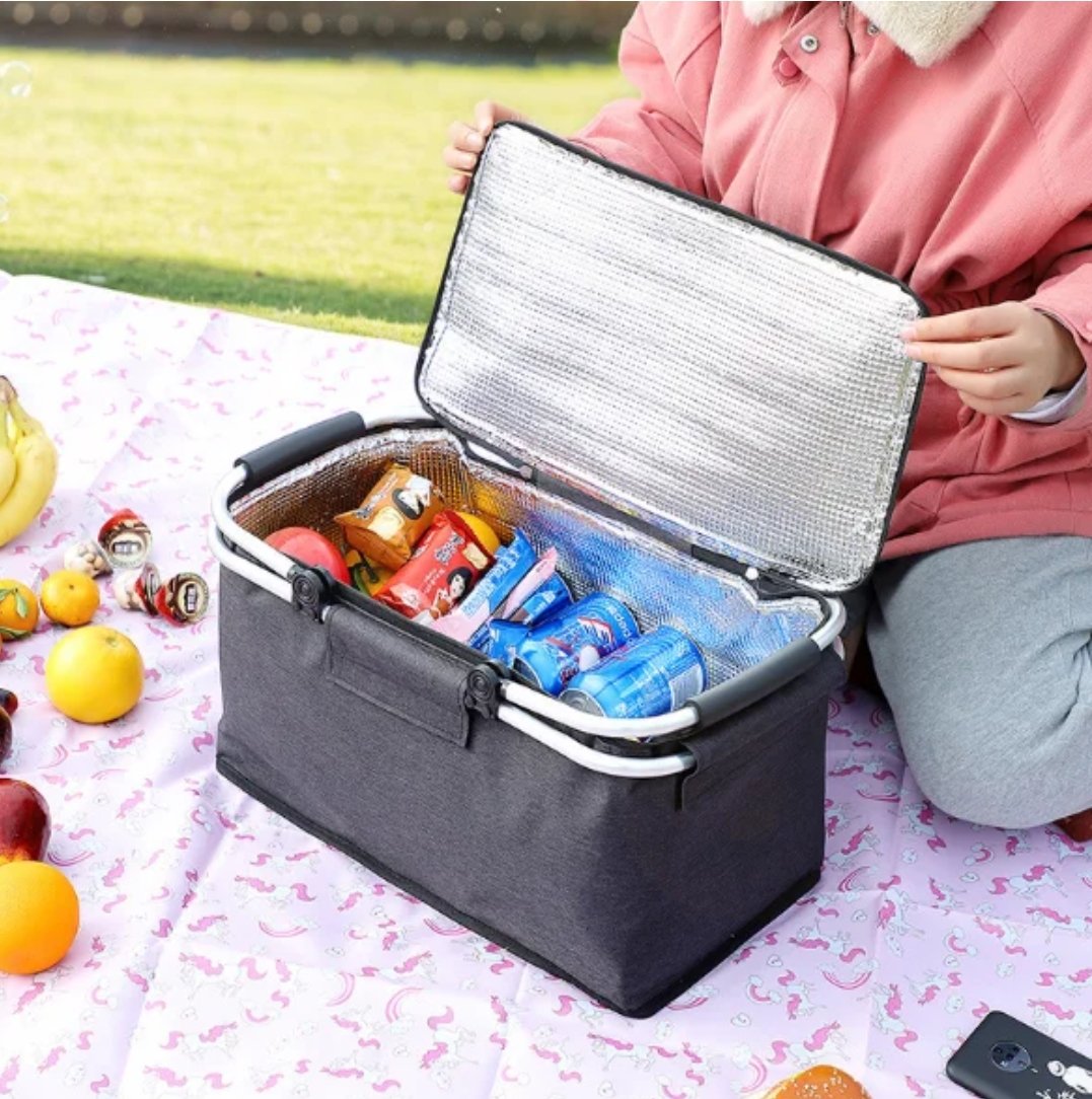 30L insulated cooler bag with leak-proof lining. Keeps food warm or drinks ice-cold. Perfect for dates, outdoor events, and birthday gifting.