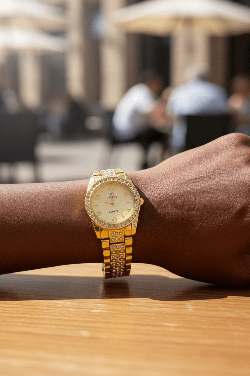 Elegant. Timeless. Romantic. 💛 The Danlex Luxury Gold Women’s Watch is a stunning diamond-studded timepiece designed to elevate any outfit. The perfect Valentine’s Day gift for your wife, girlfriend, sister, mother, or special friend.