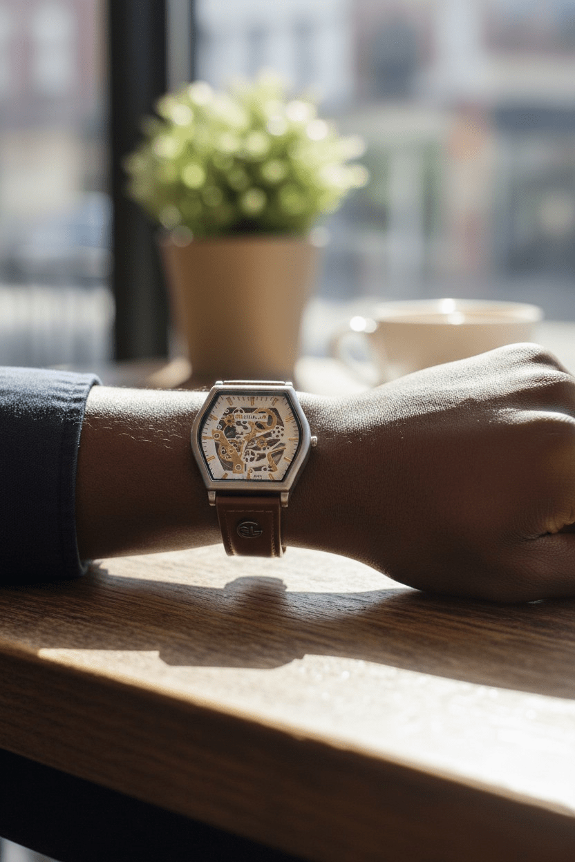 The Gusalai Luxury Men’s Skeleton Watch features a striking open-work dial and premium brown leather strap — designed for the modern gentleman who values style and precision.