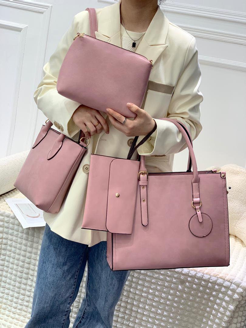 Home Handbags 4in1 pink heavy leather ladies handbag