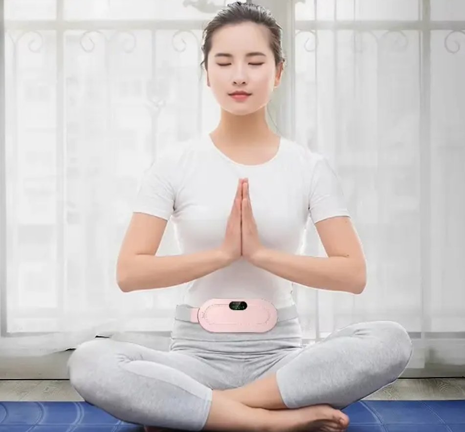 A portable rechargeable heating pad designed to relieve period cramps, back pain, and muscle tension with safe, adjustable heat levels and comfortable wear.