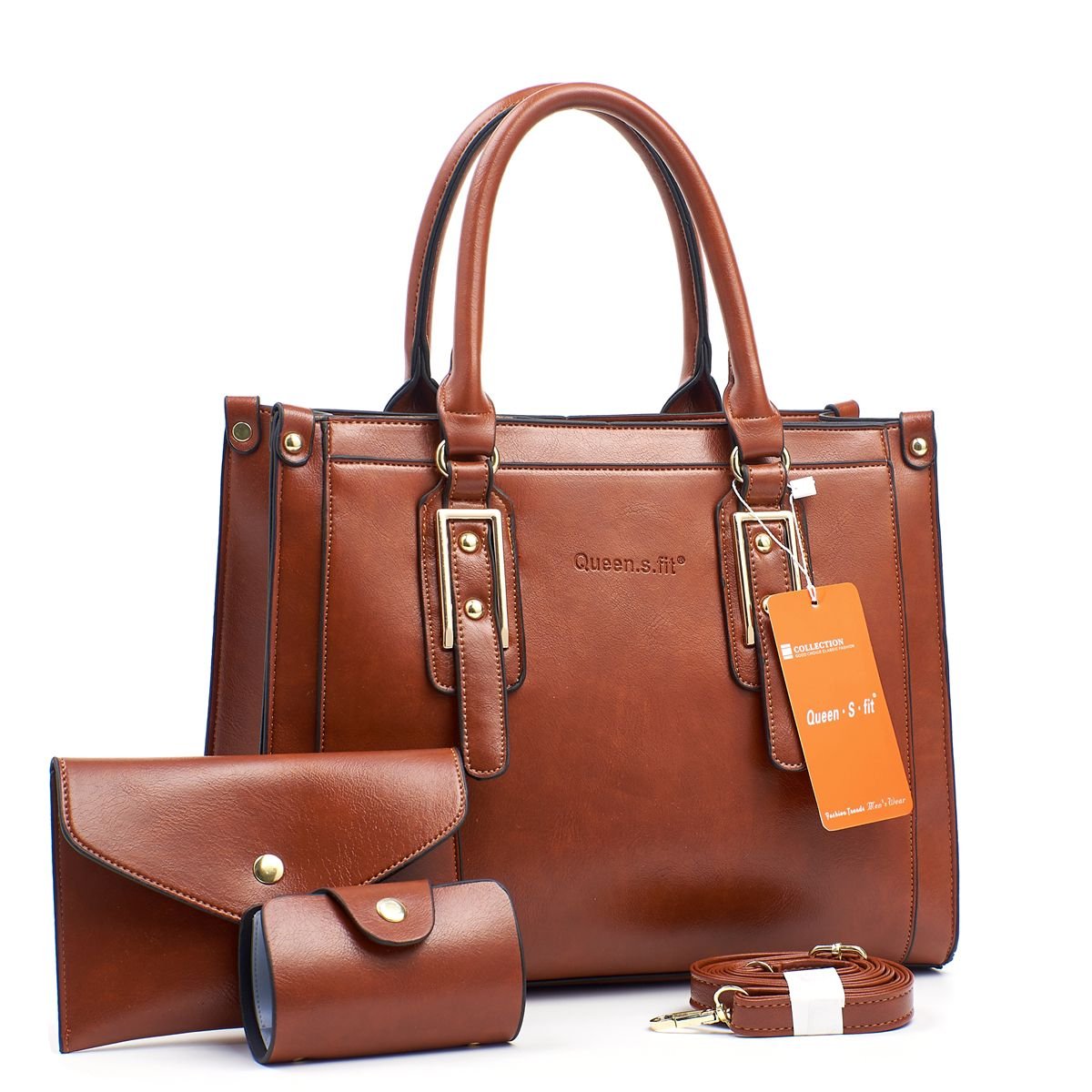 3in1 Queen Fit Buckle Ladies Handbag- ideal birthday gift anniversary gift and Valentine’s Day gift idea for wife mom sister auntie girlfriend cousin grandmother- wood Brown colour