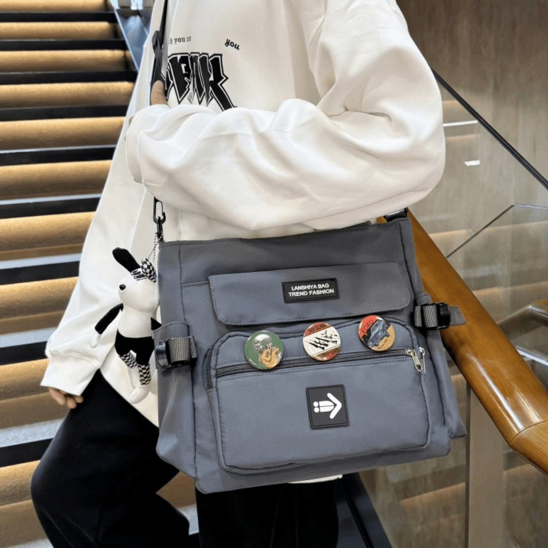 Trendy Multi-Pocket Shoulder Bag for Teenage Girls – Ideal Birthday Gift & College Bag Fits A4- Grey colour