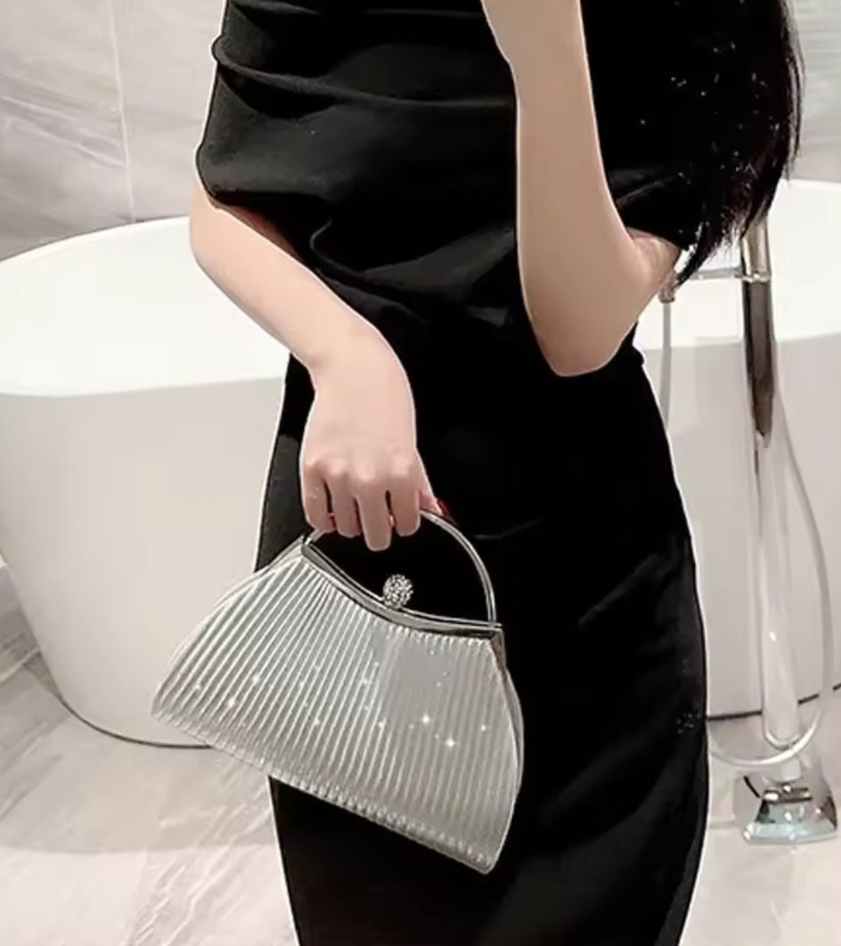 Be the first to review “Elegant Pleated Handbag for Women – Gold Frame Evening Purse with Chain Strap and Jeweled Clasp, Ideal Birthday or Anniversary Gift- Silver colour” Cancel reply
