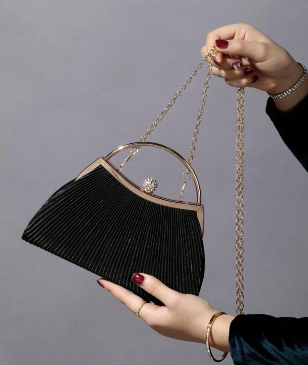 This elegant pleated handbag is a timeless accessory crafted for women who love bold sophistication. Featuring a structured gold frame, jeweled clasp, and dual carrying options—a curved metal handle and detachable chain strap—it transitions effortlessly from day to evening. The rich texture and vibrant color make it a standout piece for formal events, dinners, or stylish outings.