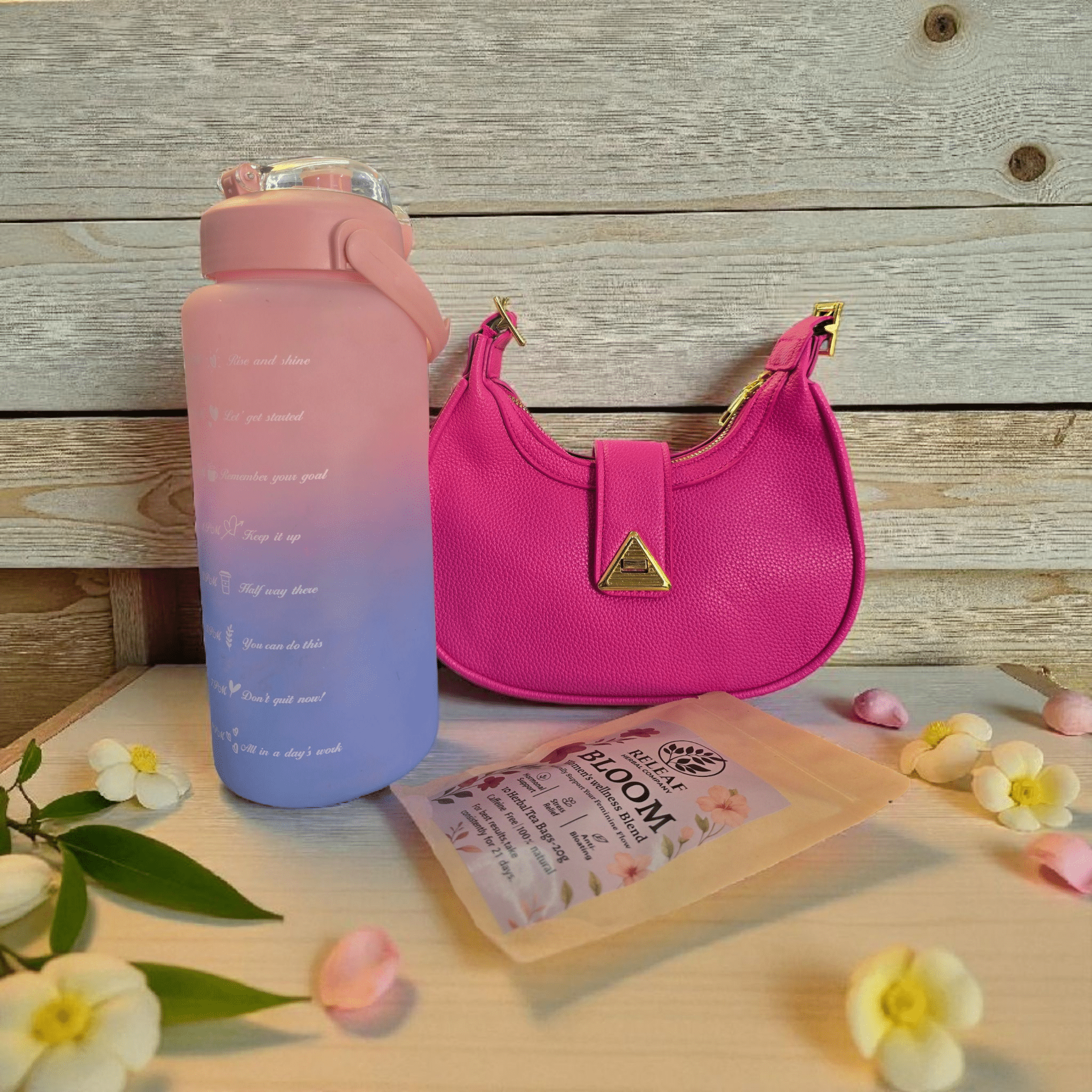 Feminine Wellness Gift Hamper – 2L Water Bottle, top handle Handbag, Herbal Teas for Girls & Women/Birthday gift