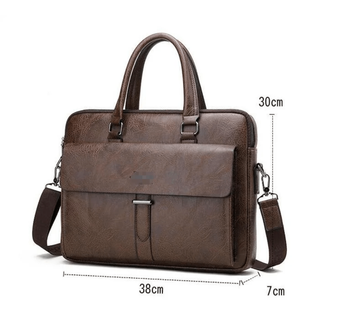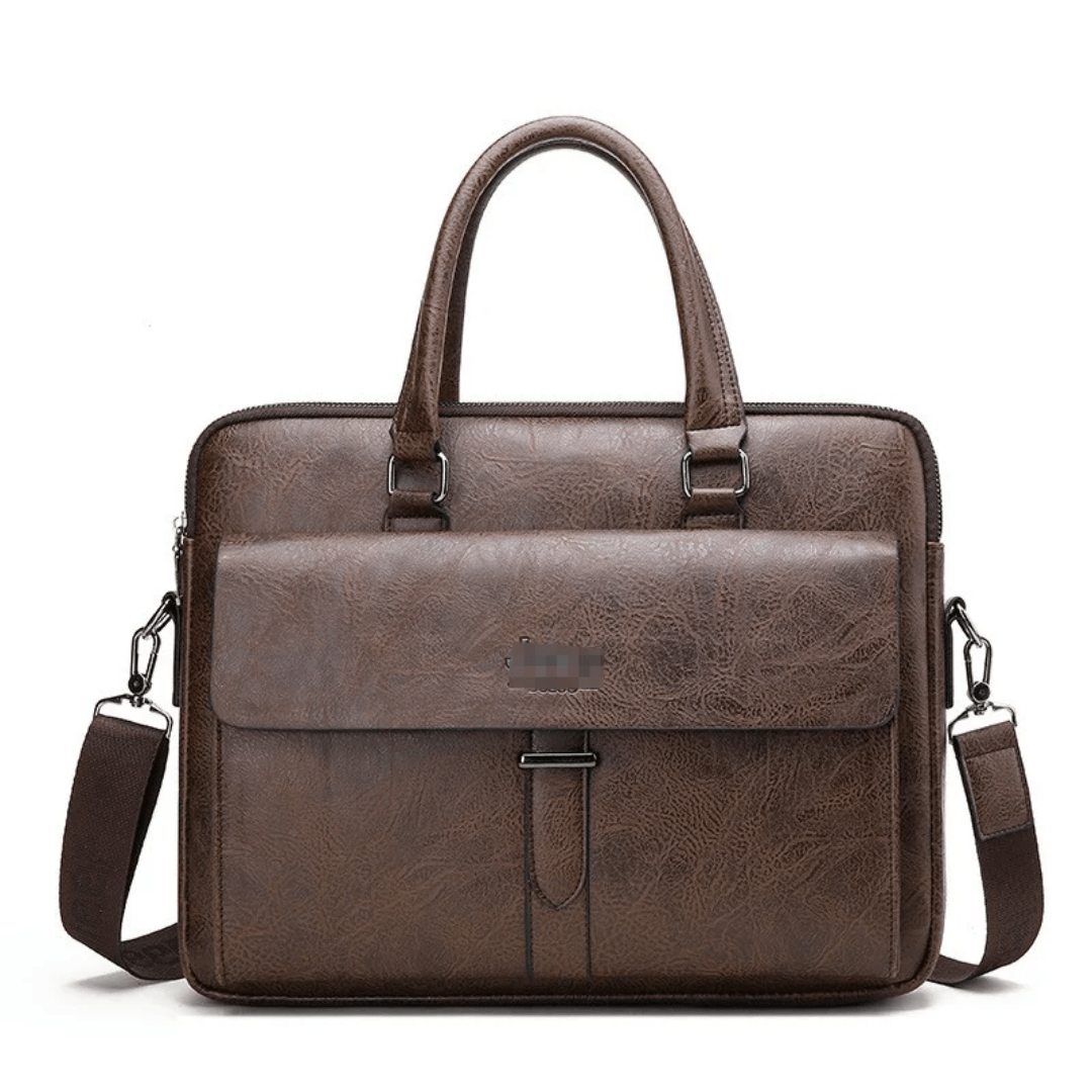 Crafted from textured leather with dual handles and a detachable shoulder strap, it’s designed for professionals who value both form and function. The spacious interior accommodates laptops, documents, and daily essentials, making it ideal for work, travel, or study.