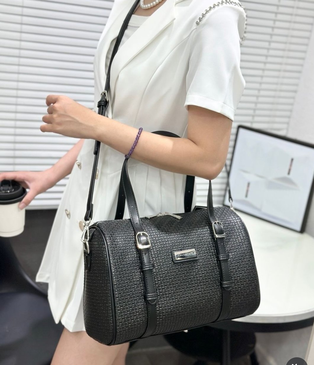Elevate your travel style with the Bullcaptain Black Leather Duffel Bag, crafted from durable leather with a distinctive diamond‑pattern texture. Designed for both sophistication and practicality, this bag features sturdy metal hardware, reinforced handles, and a sleek silhouette that transitions seamlessly from business trips to weekend getaways. The spacious interior accommodates clothing, shoes, and essentials, while the premium finish ensures lasting elegance. Whether used as a gym bag, overnight bag, or travel companion, it blends functionality with refined design for the modern lifestyle.