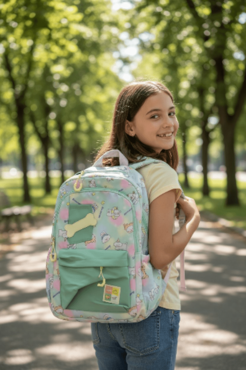 PawKet™ Cartoon School Bag Backpack – Light Green, Spacious & Pet-Inspired