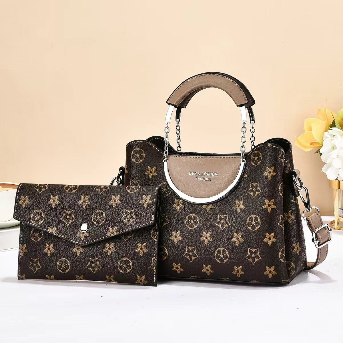 3in1 lady pearl light brown heavy leather ladies handbag birthday gift anniversary gift for women secret santa gift idea